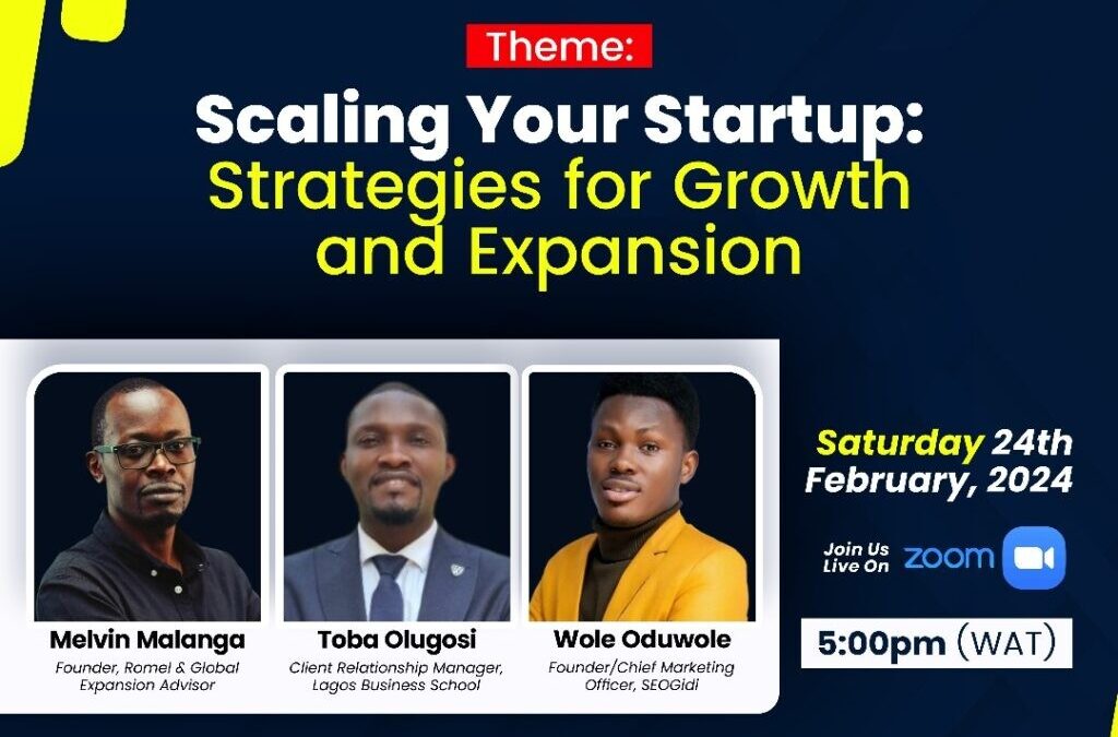 Lagos, Nigeria – The Eko Institute of Technology (EIT) is thrilled to announce its upcoming webinar titled “Scaling Your Startup: Strategies for Growth and Expansion,” scheduled for Saturday, February 24th, 2024, at 5 PM West African Time (WAT). This event is part of EIT’s ongoing efforts to support the growth and development of startups and technology enthusiasts.
