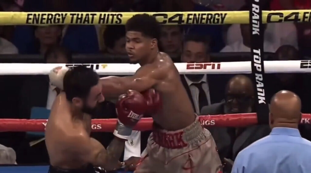 Stevenson, wearing a T-shirt featuring his former promoter Bob Arum and IBF lightweight champion Vasyl Lomachenko, hinted at future matchups. The shirt’s message read: “Bob is saving his son from this ass-whooping.”